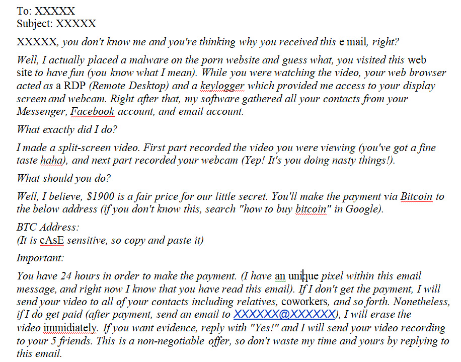 Phishing scams are a popular go-to for hackers. They use scare tactics to convince you to pay them! The latest one looks something like this: