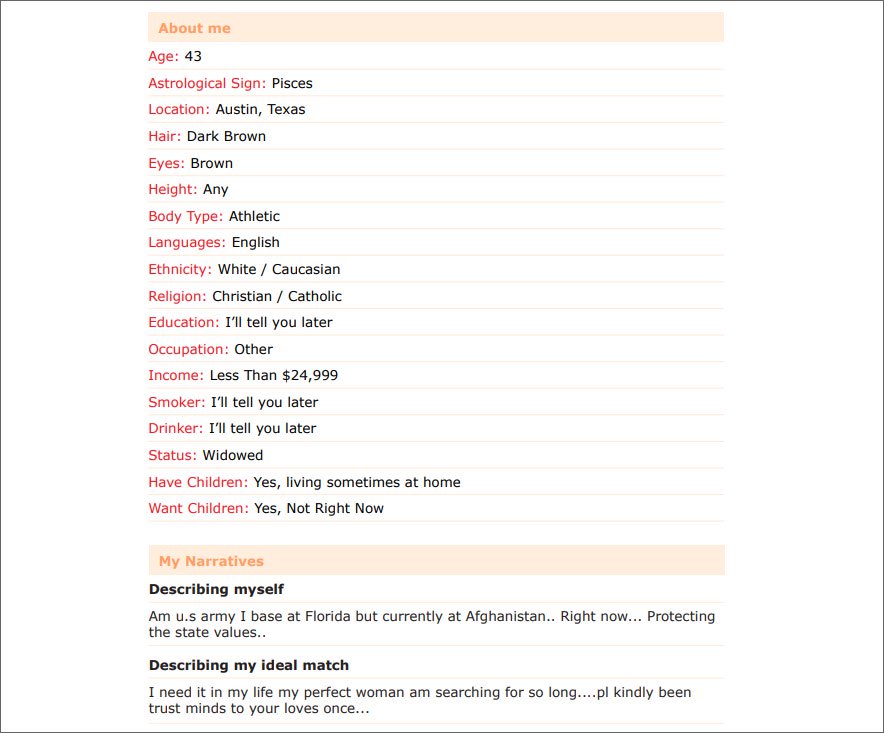 They can be a woman or a man in their dating profiles and no matter which one they are they are very convincing.